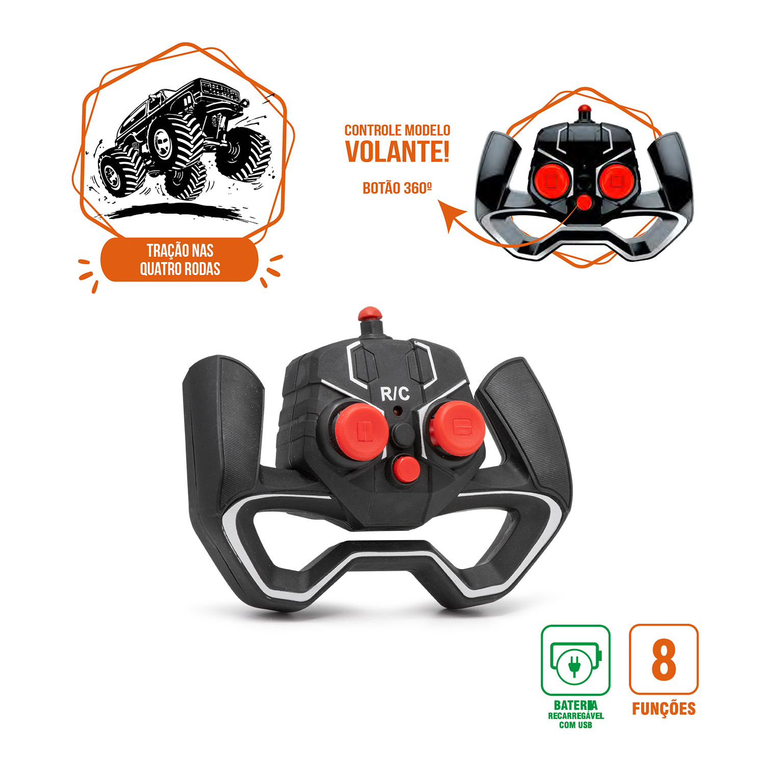 Carrinho Controle Remoto 4×4 8 Funções Horizontal Giro 360º CAR509A