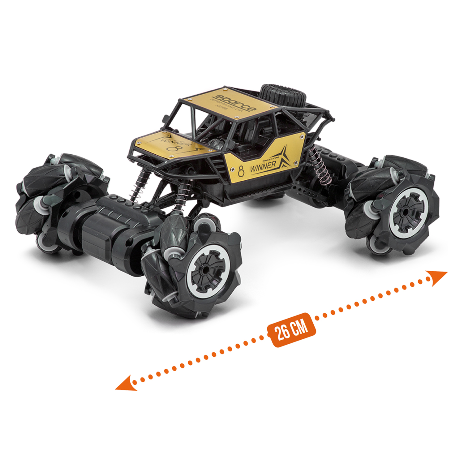 Uma opção incrível para horas de diversão! Este carrinho de controle remoto oferece 6 funções emocionantes para garantir que sua brincadeira seja repleta de ação. Com a mega Pick-up Monster Truck de controle remoto, você pode até dirigir na posição horizontal e executar giros de 360º! Este carrinho 4×4 de controle remoto permite que você domine as pistas mais radicais com facilidade.